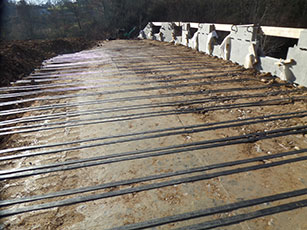 As part of this project, the company Eiffage TP completes the 15 meters high Reinforced Earth® abutments for a hydraulic isostatic structure. The reinforcements are GeoStrap® synthetic strips.